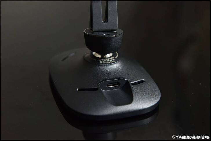 # 金屬的轉軸十分的紮實,轉起來不會有那種兩光兩光、隨著路面坑洞手機不斷變換角度的窘境。在金屬轉軸邊,也印上了輸入的電力規格。支援5V 2A以及9V 2A兩種的輸入。輸出最大是10W。在9V的情況下,我的三星Note10+會啟動閃電快充。金屬轉軸另一邊的夾具長度不短,可以有效的固定在出風口或是附贈的固定座上,因此比較不會有因為夾具長度過短,所造成固定效果不佳的情況。