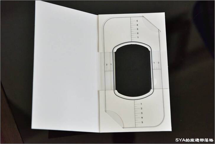 # Moshi的另一款配件「SnapTo™ 手機通用引磁貼片 (SnapTo Transformer)」。它是一整片的隱藏式金屬貼片,再加上仿皮革的外層包覆,讓它還蠻有質感的。這個配件中還提供了簡易型的量尺,方便你度量位置、精準的貼在所要的地方,算是蠻貼心的小小附件。