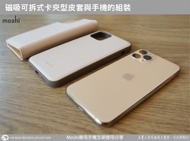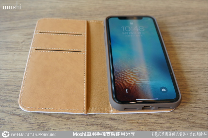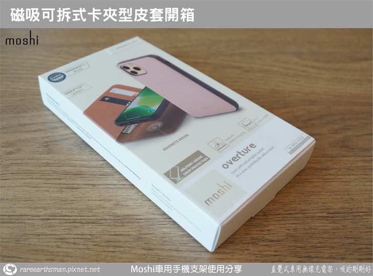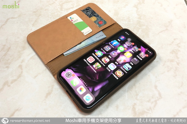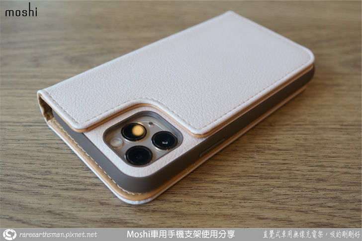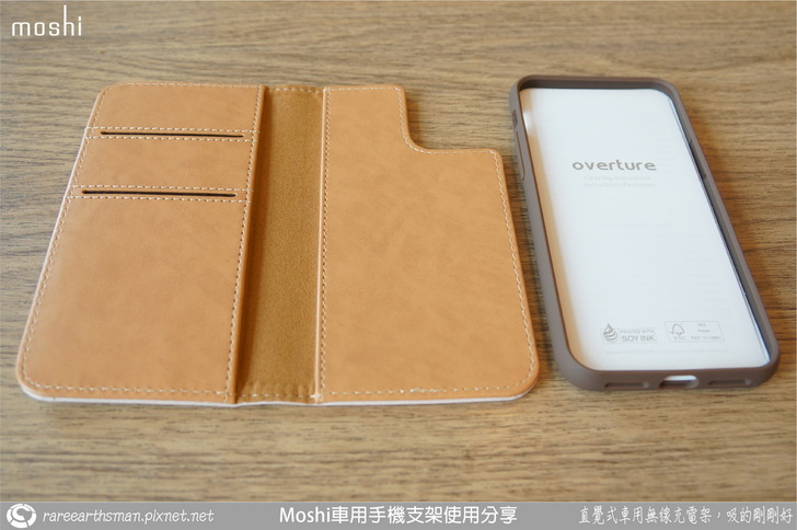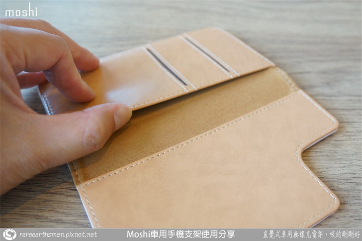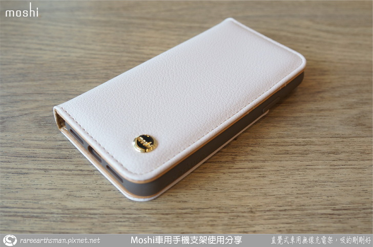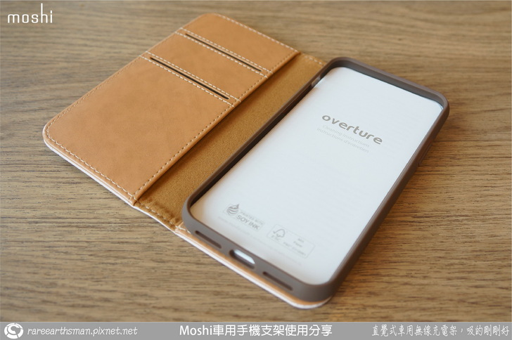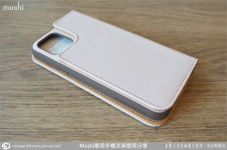 ▲介紹完車用無線充電支架後,接著就是介紹手機端的保護殼,我們選擇的是同樣SnapTO系列的overture保護殼,它的磁吸功能剛好可以對應到無線充電支架,所以保護殼可以靠磁性吸附在支架上;這款保護殼採用的是卡夾型的皮套設計,也就是它包覆到了手機的前面與後面,而前面是可以翻開的型態。老實說,本來我想說這款手機套要如何吸到支架上呢?在使用時不就前蓋要打開然後就懸在支架側邊,這樣不是很怪嗎?後來了解後,忽然覺得moshi的設計師很聰明,這部分後面大家一看圖片就會知道。