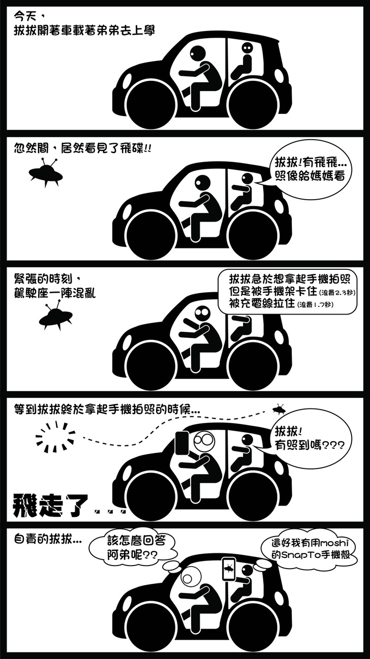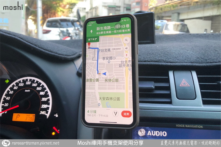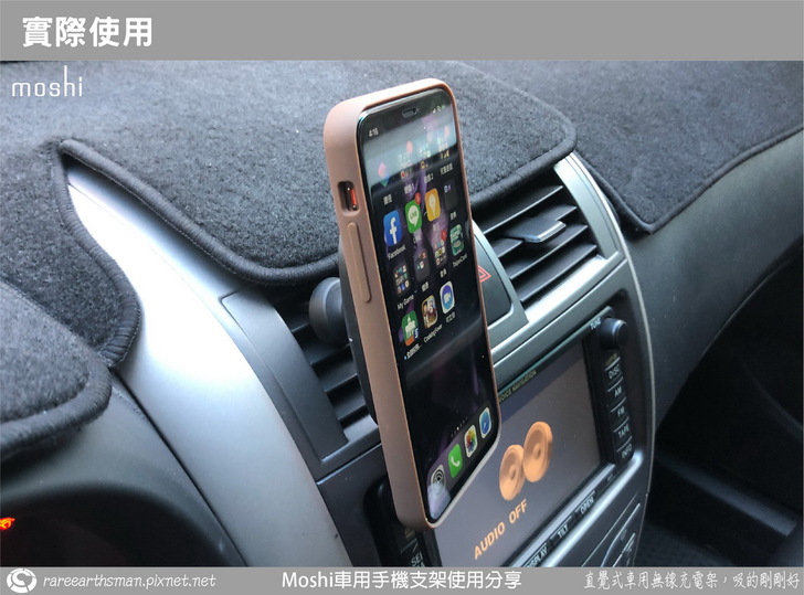 在使用過moshi的手機架與手機殼後,其實給我這個駕駛很大的感受,我的感覺就是真的"很方便",方便的是要拿取手機就直接伸手去拿就可以直接拿取,它的無線充電讓我不再先拔除充電線就可以完整掌控手機;另外就是"很直覺",要將手機放置回支架的時候,其實只需要單手拿持手機來靠近支架,支架內的磁鐵與手機殼內的鐵片會相互吸引,進而引導手機吸附到支架正確的位置;也就是說,以單純的拿取與歸位來說,真的只能說"真的很人性",讓所需要的動作簡單化,單手就可以完成動作,這種拿取與收納我很喜歡,而且在開車時可以有更多的專注在控制車輛上(當然建議要停車來操作手機)。