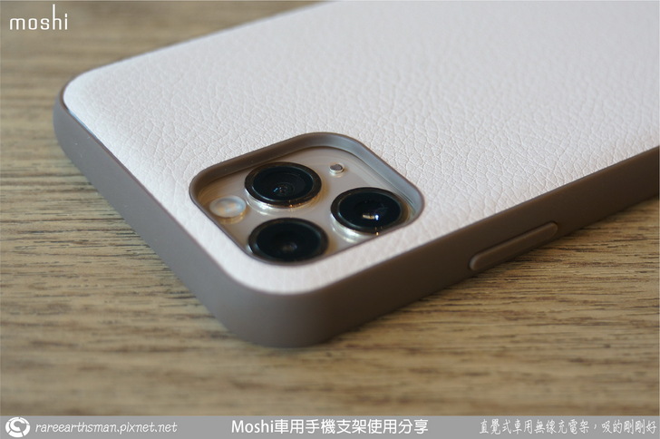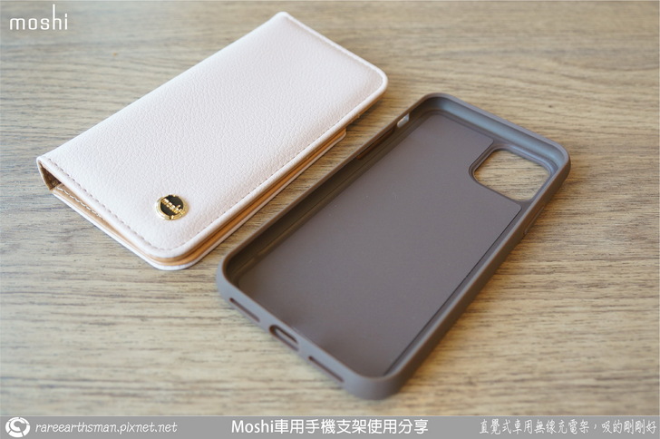 ▲這就是moshi的SnapTO系列的overture保護殼,因為老婆的iPhone11 PRO是金色的,所以我覺得搭配粉色的保護殼比較好看,也比較適合女生使用(這系列有另一種顏色是黑色的版本,比較適合男生使用),而且我也覺得保護性也很棒,SnapTO系列的overture保護殼應該是最適合的老婆的新手機的。它的粉色外皮是環保皮革,所以上面並沒有像真皮一樣的毛細孔,大約3-5年就會自然崩解壞掉,也符合手機大概使用的年限,算是滿環保的,而且重點是很好看,觸感也很好,粉嫩粉嫩的。