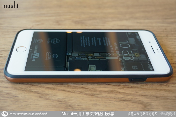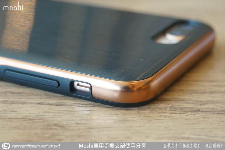 ▲除了這款新的iPhone是給老婆大人使用的,我自己一直在使用的iPhone8 Plus也是Apple首款支援無線充電功能的iPhone,差別只是沒有快充功能,所以我想既然老婆在車上用無線充電,那我的iPhone8是否也可以呢?答案當然是肯定的,moshi針對iPhone8也有推出SnapTO系列的保護殼,這樣如果老婆的手機不充電時就可以換我的手機做無線充電拉。這款保護殼是iGlaze風尚晶亮保護殼,採用雙材質設計,金屬底蓋與軟質外框的搭配,強度也有了,安裝也方便。手機殼內側的兩片圓弧就是Snap To鐵片,讓這款手機殼也具備了跟SnapTo無線充電車架組裝的能力。