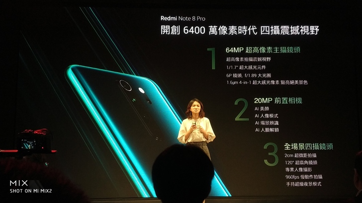Redmi品牌全新機款Redmi Note 8 Pro擁有6400萬高像素四鏡頭,採用6400萬像素超高畫質主鏡頭,具備1/1.7 吋超大感光元件和1.6μm超大感光像素,同時結合200萬像素的2cm超微距鏡頭、200萬像素人像景深鏡頭及800萬像素的120度超廣角鏡頭,以超高解析度與全焦段拍攝呈現震撼效果,開創手機拍照的新時代。透過Redmi Note 8 Pro所拍攝的相片,能以72dpi直接輸出最高3.26公尺巨幅海報,讓手機取代相機,將旅遊回憶與生活精采,變成獨具個人風格的居家布置等多元應用,讓生活充滿變化。