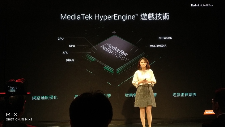 Redmi Note 8 Pro採用MediaTek Helio G90T行動平台,ARM 旗艦Cortex-A76和Cortex-A55組合,運算速度可達2.05GHz。顯示核心搭載主頻高達800MHz 的ARM Mali – G76 MP4,處理器整體最高可提供1TMACs的 AI 演算力,配合電競級 LiquidCool 水冷技術,以超越一般智慧型手機的散熱效率,有效降低處理器的核心溫度,維持機體穩定高速運行,無需擔心手機在多工應用或開啟高幀率遊戲後,產生降低運行速度的問題,能帶來絕佳使用體驗。
