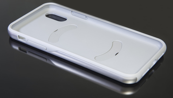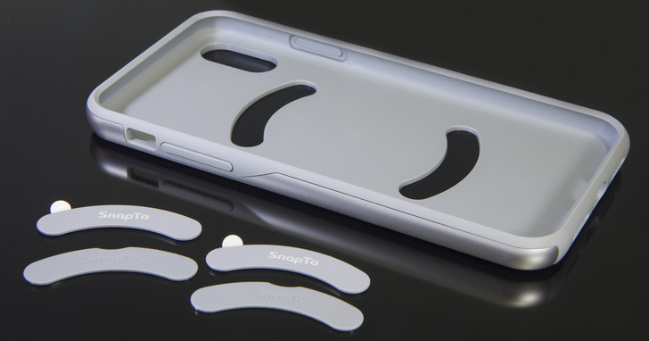 ▲這款可搭配 Moshi 新推出的 SnapTo™ 磁吸固定基座組一起使用。將保護殼內的塑膠墊片移除後,凹槽即為 SnapTo™ 系列套件中金屬鐵片之安裝位置