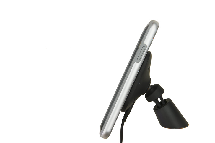 ▲兼具無線充電功能的磁吸無線充電手機車用支架