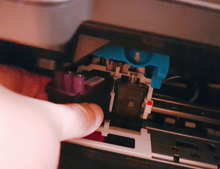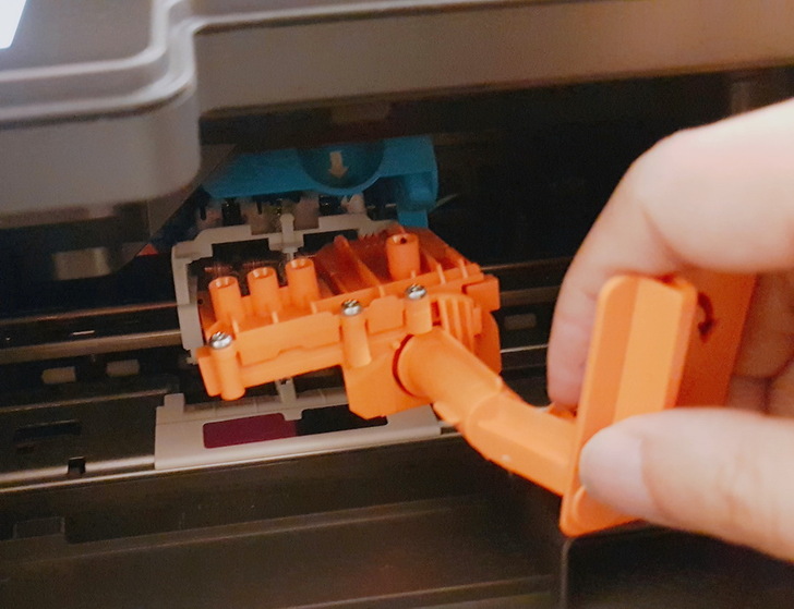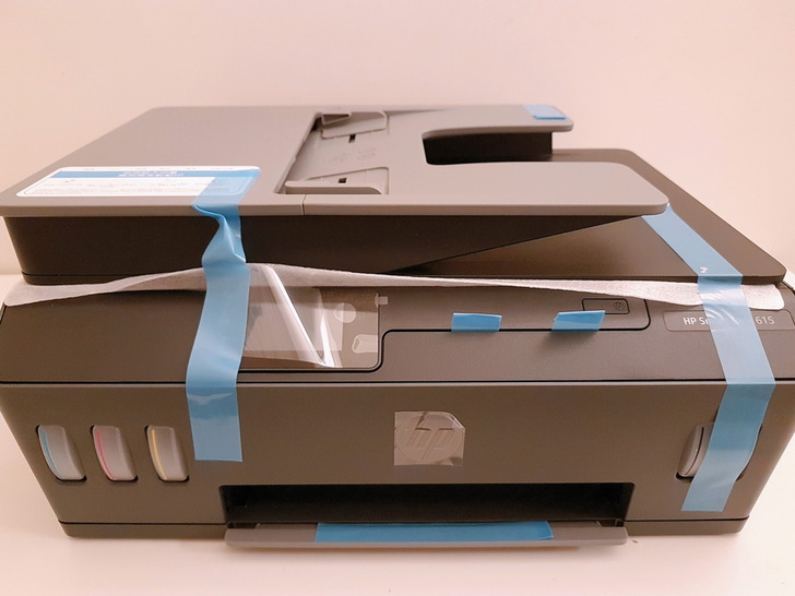 ▼ HP Smart Tank 615本體:藍色膠帶穩穩的固定住。