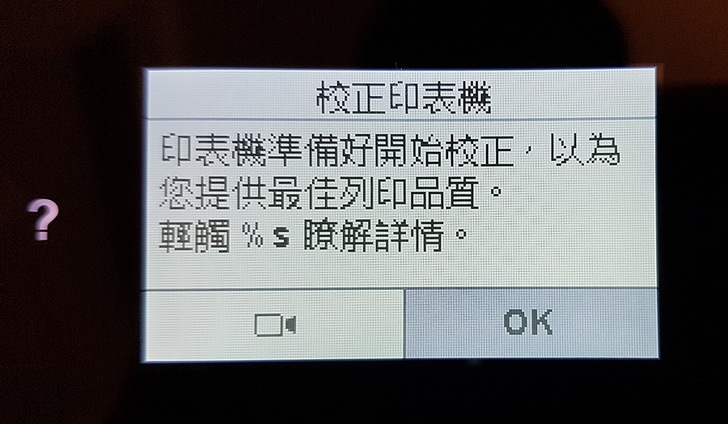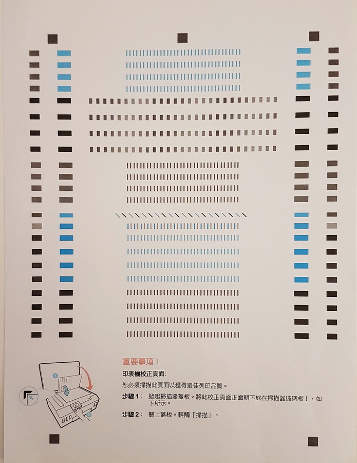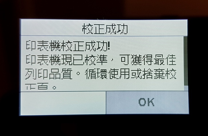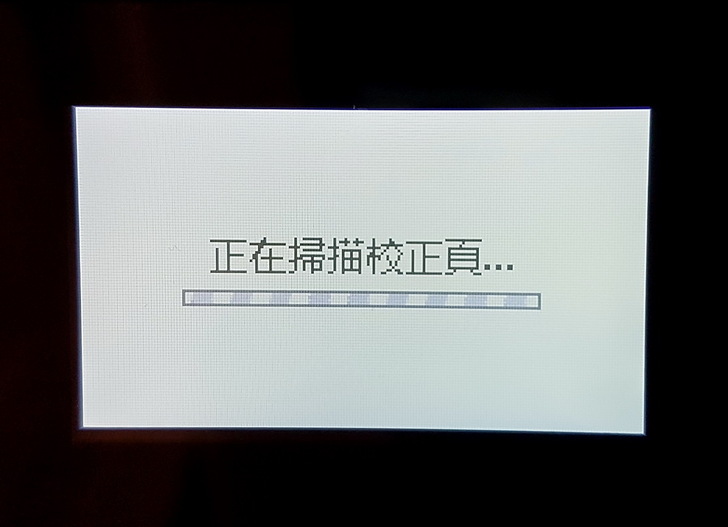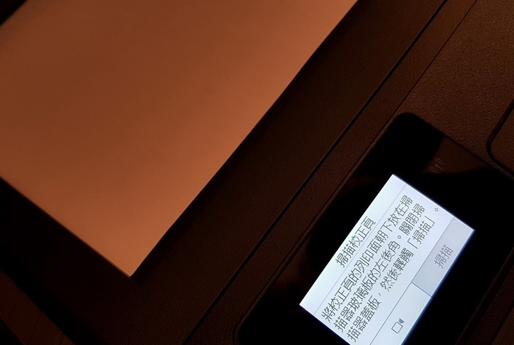 ▼ 列印完校正頁後,會再指示要掃描校正頁,掃描完成後才算校正成功。