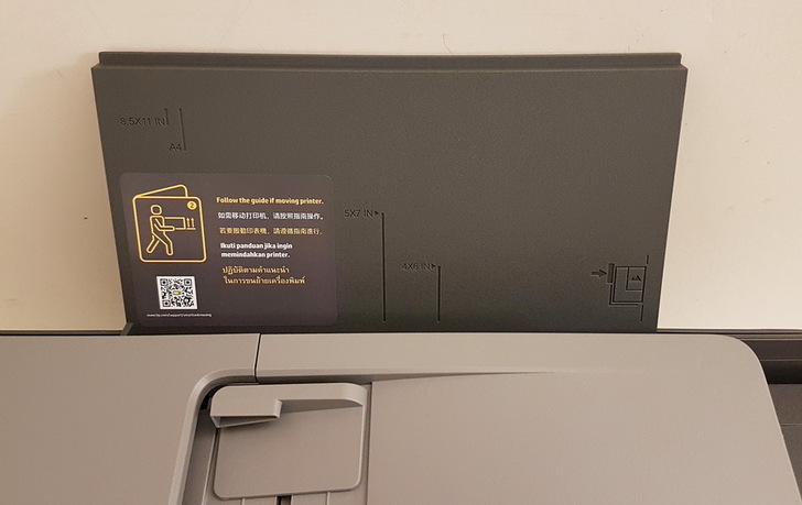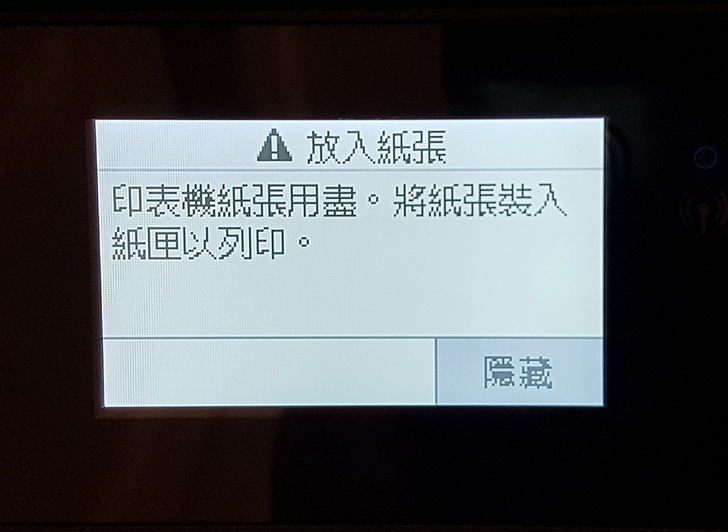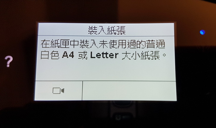 ▼ 未放入紙張也會提醒,機身後方的進紙匣往上拉,出紙處往前拉就會自動往前延伸。