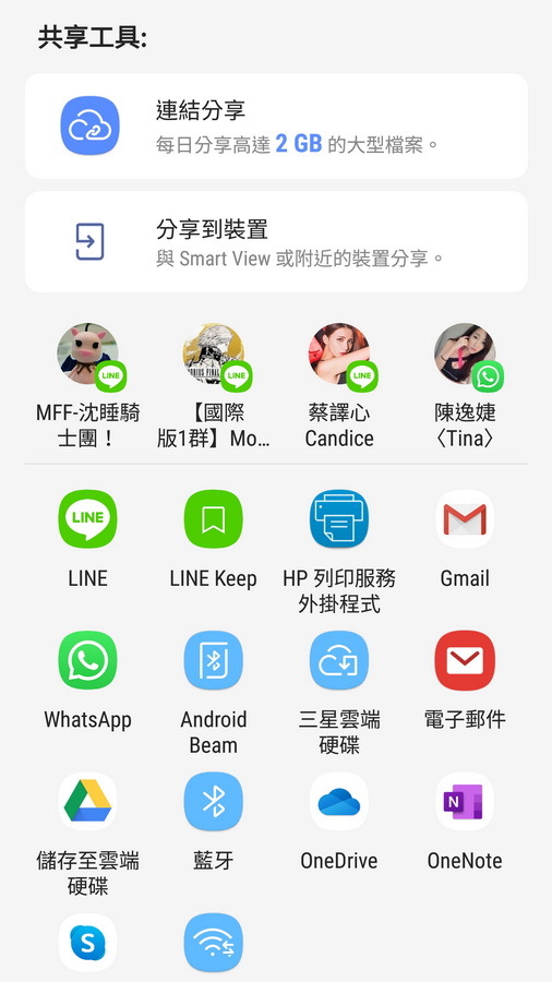 ▼ 共享工具 則是可以把 相片跟文件,使用者有多種分享方式可以選擇。
