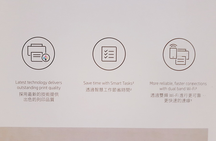 最讓筆者滿意的莫過於不沾手的填充墨水設計,還有超大印量,操作方面幾乎只要使用 HP Smart App 就可以使用所有的功能,不只使用起來方便,其實對於公司的資訊人員來說,也省卻了要設定電腦連接印表機的麻煩。