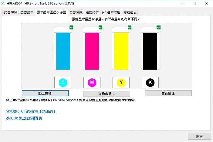 ▼ 墨水匣的墨水存量其實打開印表機前蓋就看得非常清楚,最方便的是可以直接透過連結線上購買。