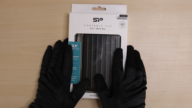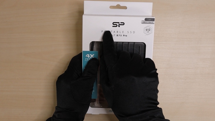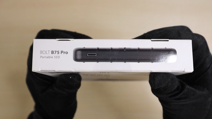 B75 Pro 的包裝標榜速度比外接機械硬碟快 4 倍、良好的抗刮能力、USB Type C 連接。