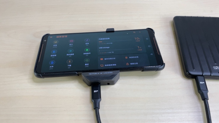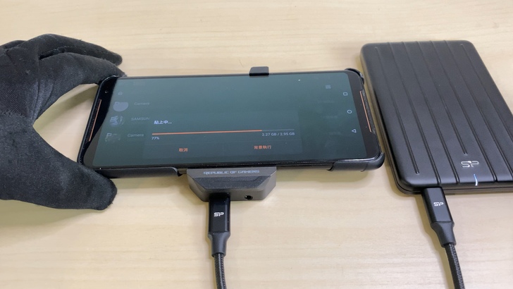 這個方法適用於 Type C 且支援外接硬碟的手機或平板。不過現在 Type C 很普及,幾乎新手機都有支援,差異只是在速度快慢,接頭通用性其實頗高。例如近期測試以 ASUS ROG Phone 2 和 OnePlus 7 都可以讀取到 SP B75 Pro。