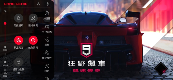 遊戲時可以開啟左側的控制介面,快速調整選項,這個設計很棒。講到介面,也順便說一下《狂野飆車》這款遊戲,先前玩過這款遊戲的前兩代,而且是全部關卡破完的程度。隔了不少年終於推出第九代。這代的遊戲介面感覺不如以往,從載入遊戲到真的開始玩,要點選的層數太多,介面的選項非常繁多,一開始會搞不清楚要點哪一個。而且每個按鈕的過場動畫時間太長,導致玩個遊戲一局也才兩分鐘,結果花了一半時間在處理車子、點選項這些過程。