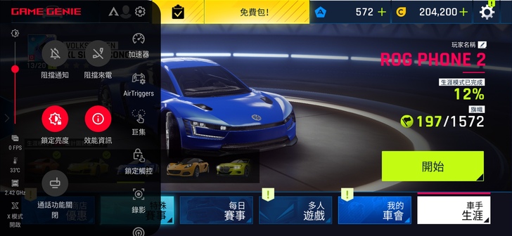 這次在 ROG Phone 2 玩遊戲,這款官方宣稱「專為遊戲打造」的手機,還真的有那本事。實際遊玩,也真的看出這台電競手機的價值。在遊戲中駕駛賽車時,得力於 120Hz 的螢幕,哇~那畫面之流暢,真的是難以言喻。