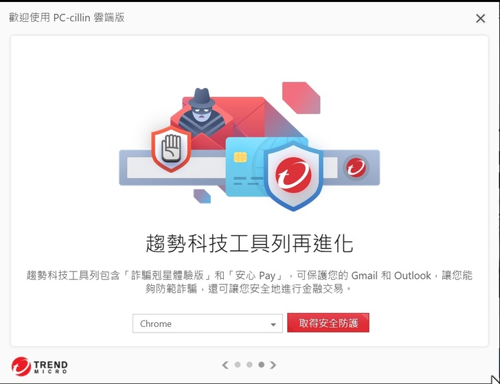 網路瀏覽、線上購物、社群網路,現代人的網路活動都是在瀏覽器或是手機上面進行的,面對現在層出不窮的假網址、真釣魚、一頁式購物網站詐騙、社群網站上種種企圖竊取個人隱私的活動與行之有年的詐騙郵件,這些圍繞著個人隱私與重要財務資訊的攻擊透過結合了瀏覽器擴充套件的趨勢科技工具列可以讓 PC-cillin 更加主動防護個人網路安全而使用者也能更了解安全防護軟體究竟做了什麼防護措施從而建立起與軟體之間的信賴關係。