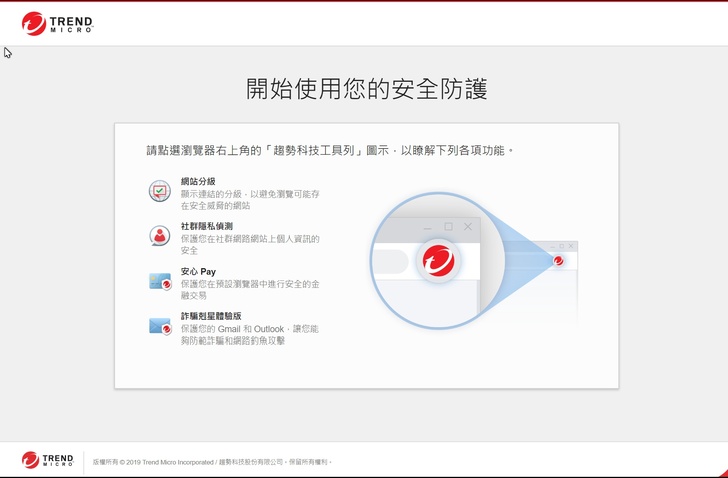 安裝完趨勢科技工具列之後可以先瞭解一下它可以做到哪些安全防護。