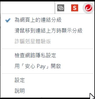 網站分級:顯示連結的分級以避免瀏覽可能存在安全威脅的網站,雖然這個功能 Chrome 本身也有不過 Chrome 的運作邏輯是當進入可能有威脅的網站時它會把使用者擋在網站外並告知這時一個不安全的網站而趨勢科技使用的方式則像我前面提到的另外一個擴充套件 WOT 所提供的功能類似,是當看到連結的同時就已經告知使用者這個網站的評級如何如果有疑慮就不要點進去連結,個人覺得這樣更能夠預防使用者進入有安全威脅的網站。