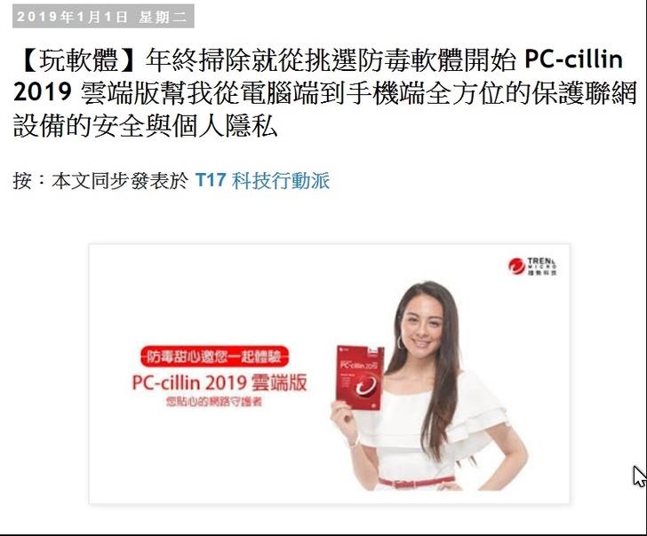 在去年年底的時候我正式開始選用趨勢科技的 PC-cillin 2019 雲端版做為個人電腦與手機的安全防護軟體。在這段時間裡它也幫我擋過幾次來自網路的病毒威脅,雖然我自認自己的電腦與網路使用習慣應該算小心謹慎的,但就像我在之前文章裡提過的:「不管自己再怎麼小心總還是要怕麻煩不請自來。」有了 PC-cillin 的防護我可以更放心的下載測試軟體、瀏覽網路文章、在網路上購物、管理個人網路帳密。
