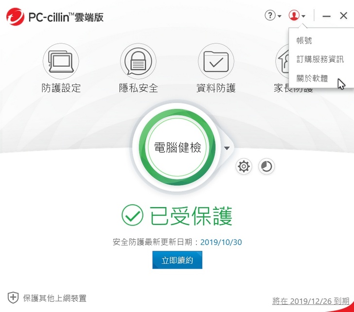 因為我本來就是 PC-cillin 的使用者所以我是直接透過軟體更新的方式升級到 PC-cillin 2020 雲端版的。