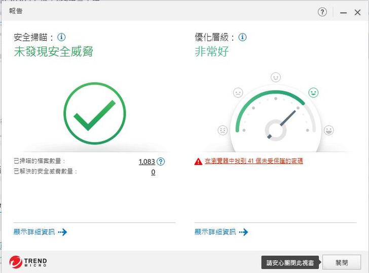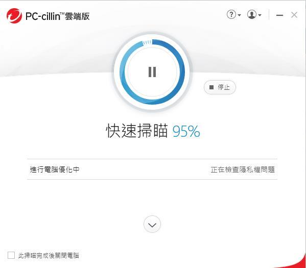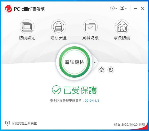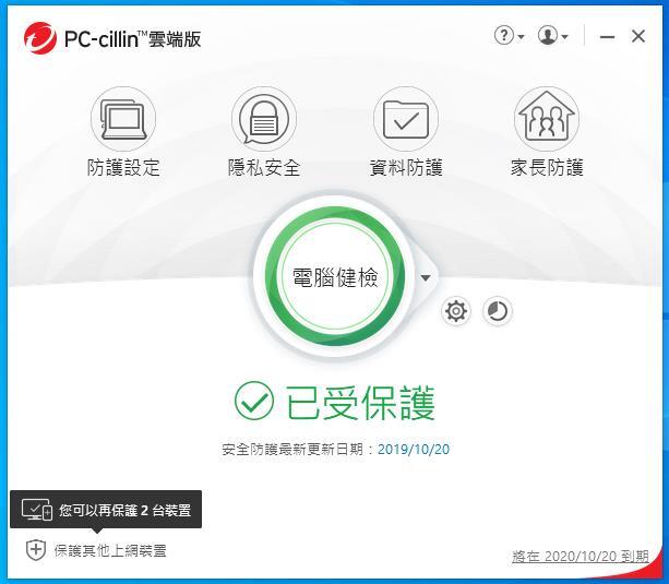 安裝完畢便開始進入 PC-cillin 2020雲端版的全面防護中