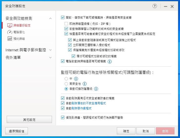 掃瞄喜好設定..可以依照使用者的習慣來做電腦方面的設定,讓使用者上網不用擔心電腦因此而中毒,PC-cillin 2019雲端版會在不影響使用者的使用,默默的保護著電腦