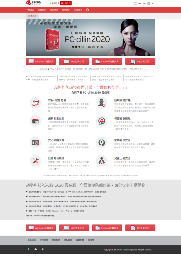 官網就有詳細介紹這次PC-cillin 2020雲端版的產品特色