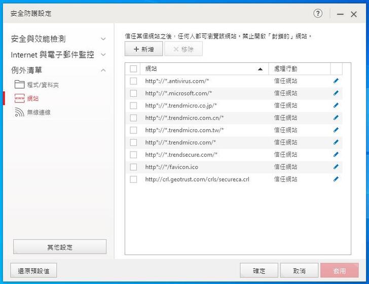 凡事都有可能會有例外,這一項是為了發生一些不可預知的狀況時,所設置的一些例外條件或是網站,讓使用者可以自己去設定