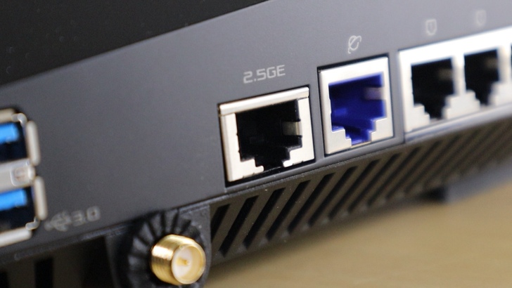 其中 GT-AX11000 很特別的是,其具備一個 2.5GbE 的網路阜和四個 GbE 網路阜。與 AS-U2.5G 搭配,就可以建立出 2.5GbE 的連線速度。