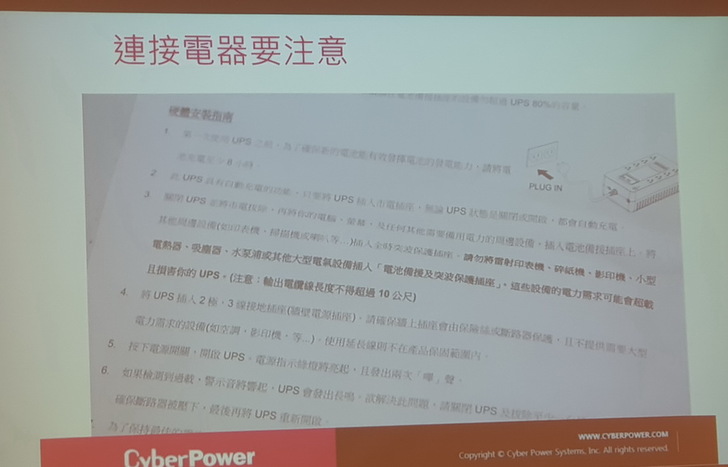 ▼ 老貓 指出很多人對UPS的迷思,特別強調 說明書 一定要看,選擇符合自己的產品就好。