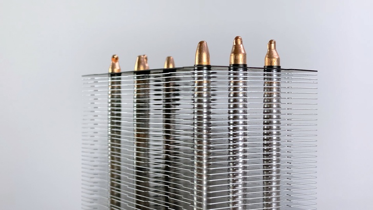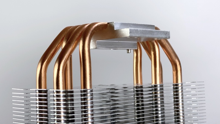四根銅導熱管表面處理也不錯,摸起來沒有明顯瑕疵的粗糙感,在光線的反射下,銅原色在一片片鋁鰭片也格外亮眼。