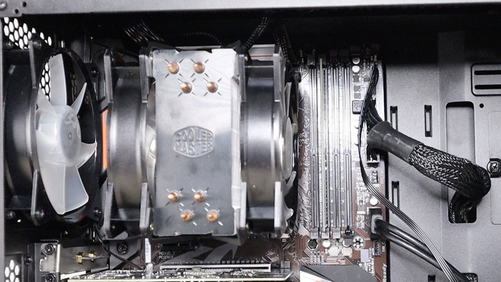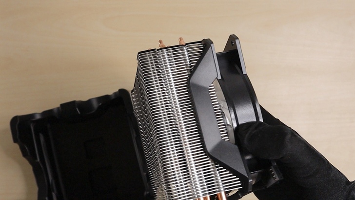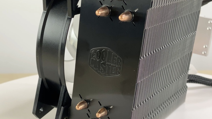 MA410P 的頂部是一層黑色的散熱片,中間則是銀色的鋁原色散熱鰭片,上面有 Cooler Master 的 Logo。