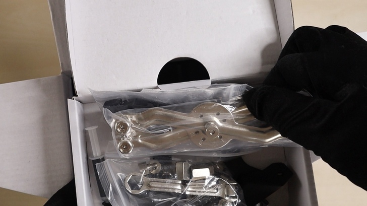 配件盒中有各種固定支架、螺絲、簡易板手……等。