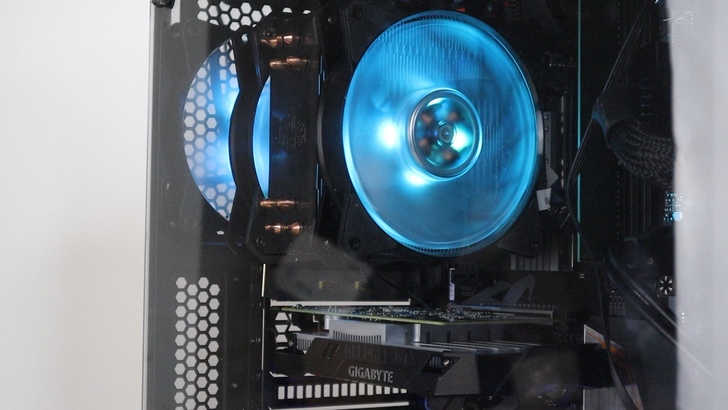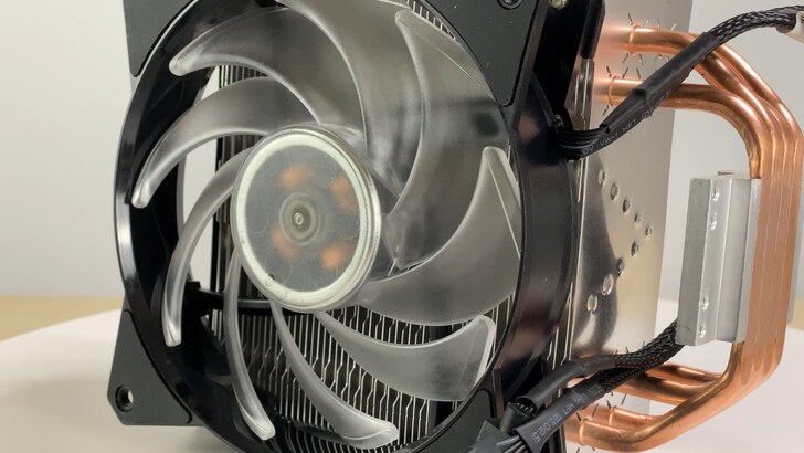 風扇的 LED 在馬達部分,扇業表面有點霧面處理,亮起時整個扇葉也會發光。就散熱效能來說,i5-9400F 是對 MA410P 來說是游刃有餘,因此完全不用擔心壓不住的問題。