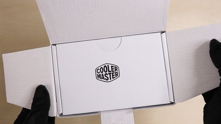打開包裝首先看到的是一個白色的配件盒,中間有 CoolerMaster 的 Logo,非常簡潔的設計。不過這個 Logo 的位置好像有點偏左,不在正中間,還好不是在產品上,不然會很囧。
