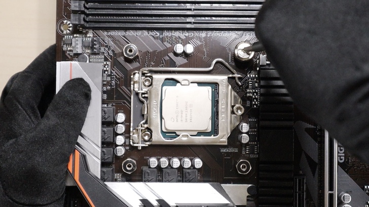 安裝上散熱器本體,並將 X 型鎖具固定住散熱器,一邊微調,一邊輪流鎖緊。