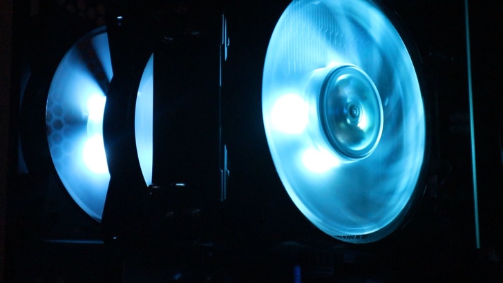 風扇上面是沒有 Logo 的,發光更絢麗。運轉時噪音也不大。