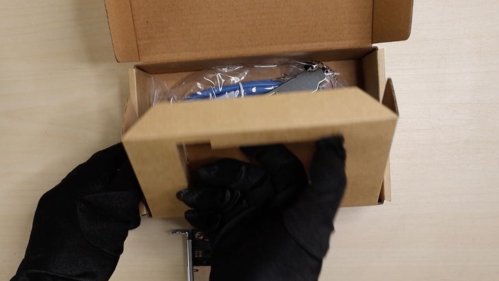 打開包裝後,中間就是擴充卡本體啦~包裝在防靜電袋中。