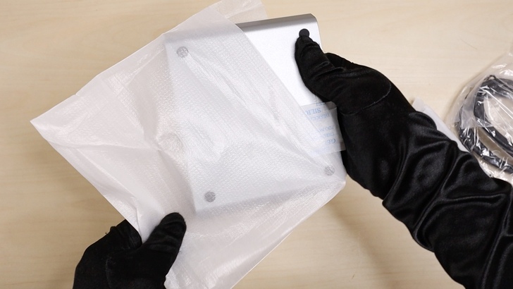 從包裝袋中拿出 US3310 本體,還附送一包乾燥劑。可以看到下方有四個圓形軟墊,拆了一下發現都沒有螺絲耶 XD 暫時還不知道這個機種要怎麼拆。