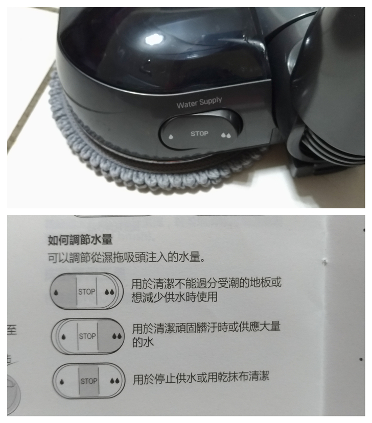 至於濕拖吸頭基本上有三個設定,就算要用乾拖也可以