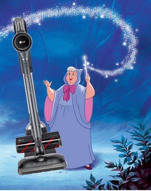 當仙社端拉哭著煩惱無法準時將城堡打掃此時神仙教母出現帶來了" LG A9+濕拖無線吸塵器"