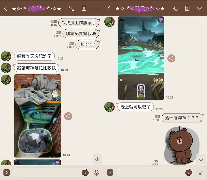 以前她還沒接觸劍與遠征這手遊時,全家都會打理的很好,衣服洗好摺好收好,晚餐也是在我到家前煮好等著我,家裡整理的乾乾淨淨的,是個標準的賢妻良母好內助