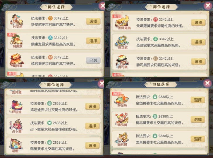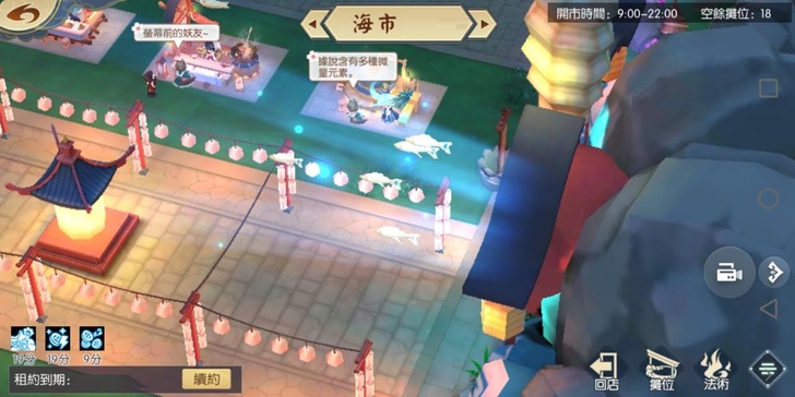 海市的經營之道:還是努力把食材備滿,上陣開設攤位最佳技法妖怪,然後記得為自己的店施法一下,再派遣妖怪前去遊玩,遊玩會有大量經驗值,每日輕鬆賺得的貝殼與銅幣獎勵都相當不錯,貝殼最終還能換大祭司SSR啊!!!