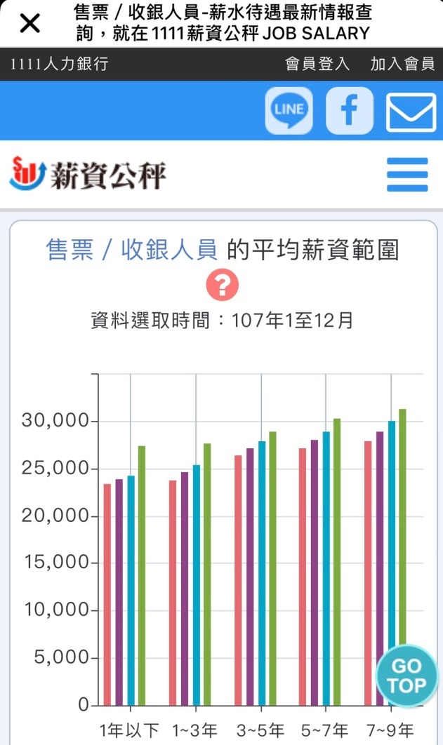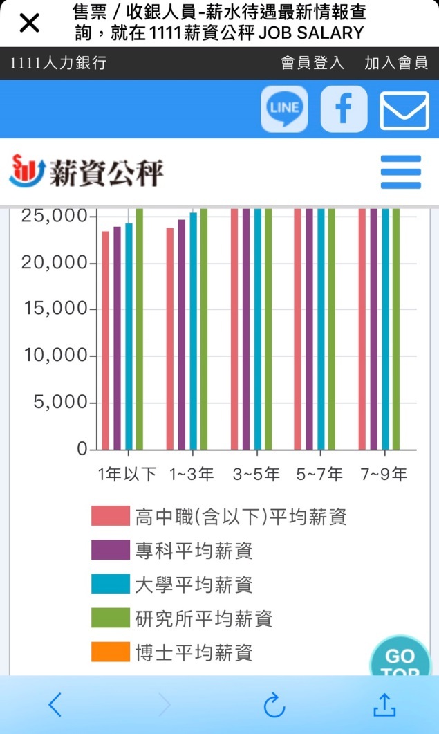 我選的是門市銷售類型,因為對我來說門市銷售是比較屬於貼近庶民的工作類型,直條圖直接顯示了學歷跟年資對應的薪資數字,讓你在挑選工作時就可以大概了解這類職務的薪資水平,避開一些比較薪資比較低的公司,進而從高薪的公司開始投遞履歷,相當的實用。