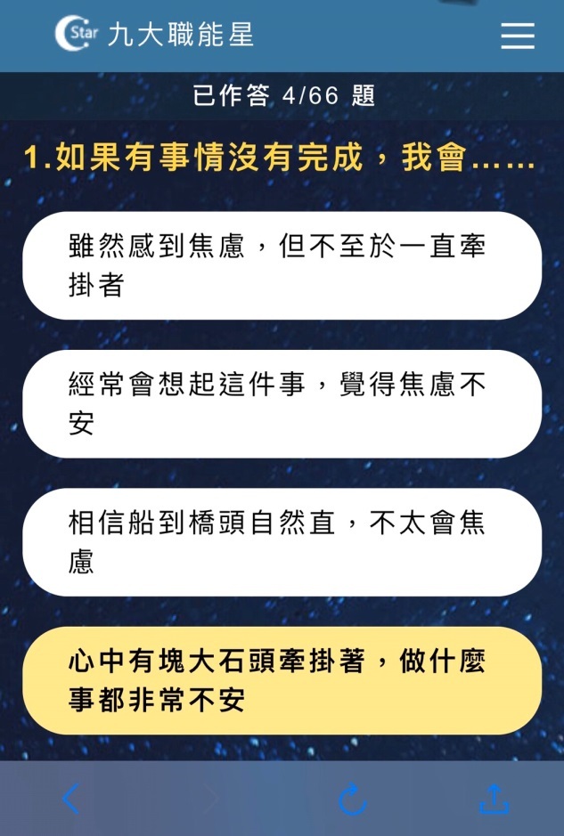 這個測驗大該要10~20分鐘,問的內容比較深入,他是針對工作的一些狀況來詢問你應對的方式,一共有66題,所以需要一點思考跟時間。
