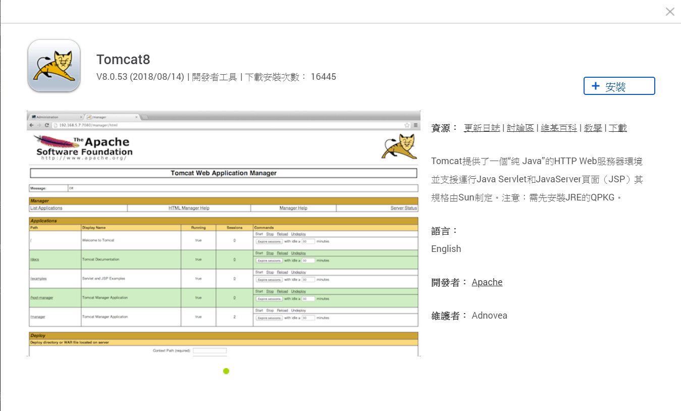 這裡有二個選擇,一是直接架設網站,這時我們可以透App Center來安裝Tomcat或Container Station來安裝Nginx,把已經做好網站放上。如果還沒打算花錢制作網站也沒關系,我們可以從Blog架起,同樣的我們可以透過App Center來建置WordPress。