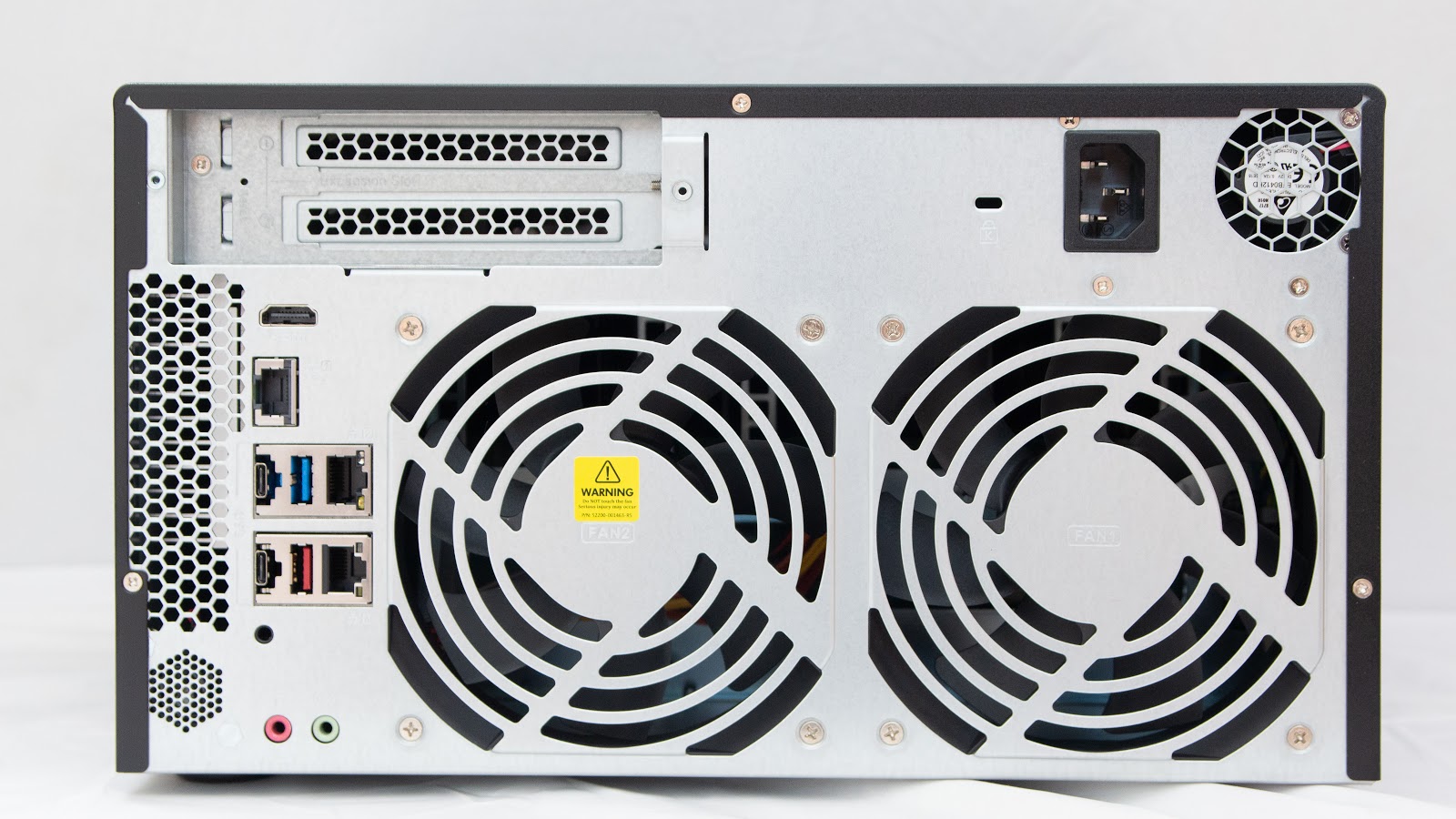 背面可以看到二個大風扇,QNAP高Bay數的NAS都做的很小,在散熱上QNAP下了不少苦工。