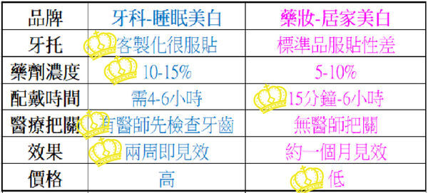 最大的差異性在於美白藥劑濃度和客製化美白牙托以及配戴時間