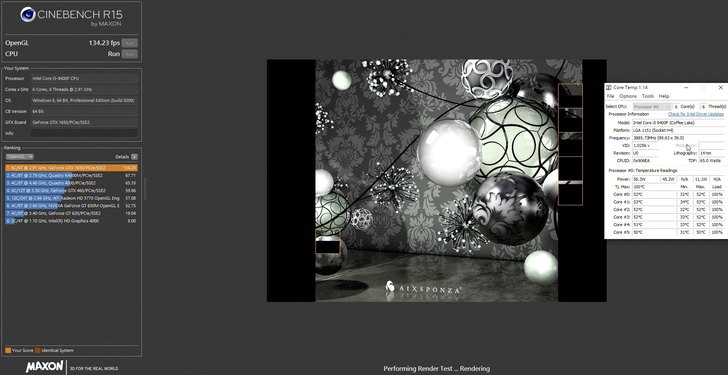 在 Cinebench R15 中,CPU 溫度也在 50~55 度之間。